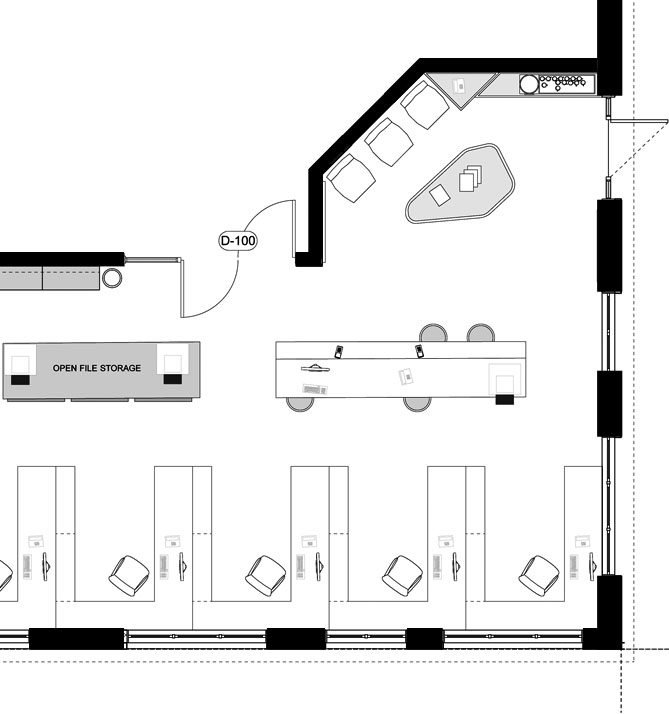 When a local auto body and collision repair shop contacted with hopes of updating their office and customer service area, we took a close look at their current space and how it worked. People usually bring their vehicles in early. Often on their way to work. Making between 7 and 8 AM the most hectic time of day. We were there first thing in the morning and observed the flow in and out, customer and staff behavior and movement of files through the office and into the shop. Using the data we collected that morning we could suggest ways the space could be used more efficiently. These include centralizing copy/fax/print units with file storage. This move also creates a buffer between the office and the bustling shop floor. A modified front counter allows more room for each employee and clearly defines boundaries for customers.