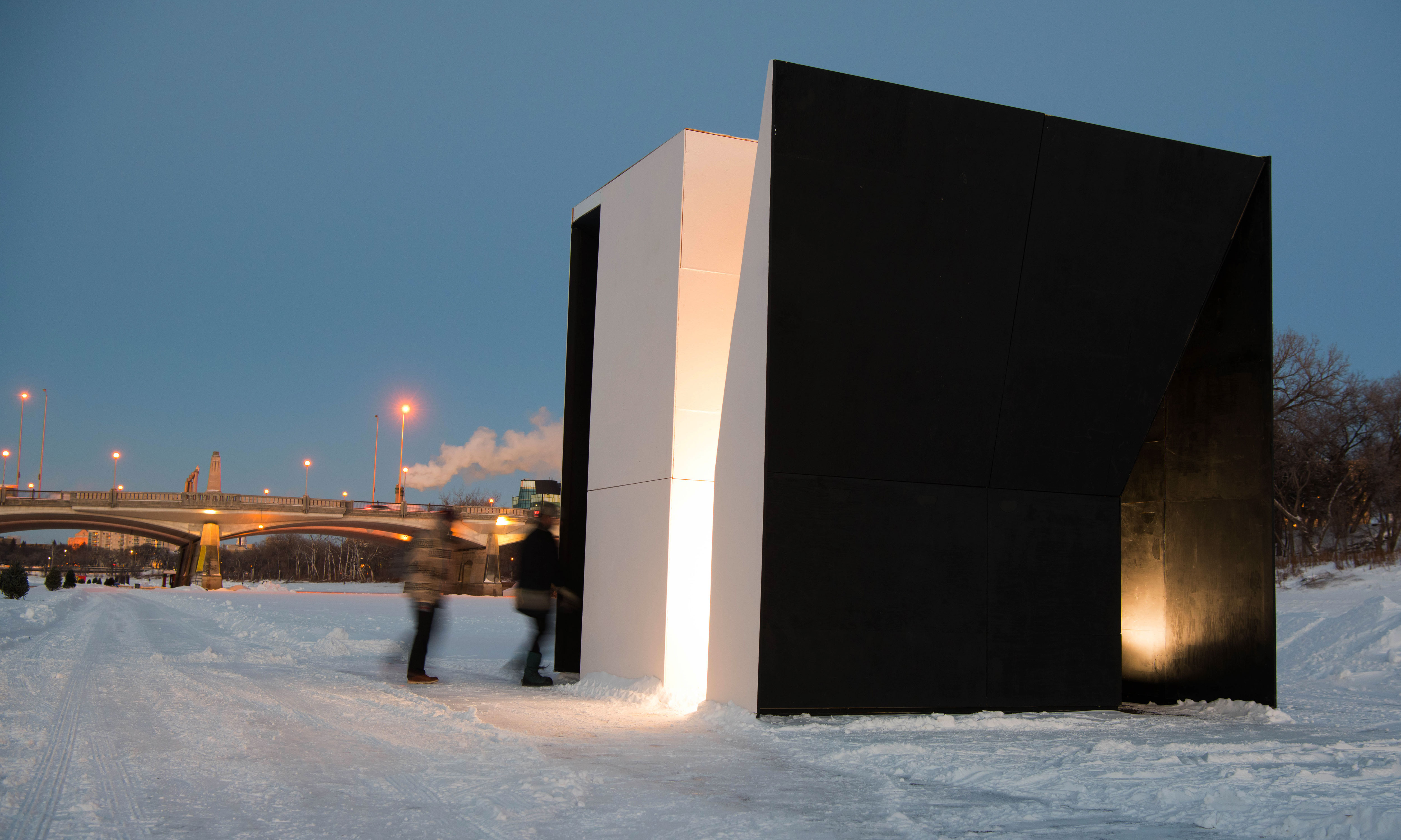 Since 2009, Warming Huts: An Art + Architecture Competition on Ice has celebrated two things; innovative design and cold weather. At the end of January each year the frozen Red and Assiniboine Rivers at the heart of Winnipeg become a winter destination centred around the Forks National Historic Site of Canada. Sputnik has been involved in the competition since the beginning, taking on various roles, from project coordinators to fabricators and designers. Winnipeg is often referred to as one of the most frigid large cities on the planet. This competition, along with the skating trail, attracts designers from around the world and encourages locals to rediscover their city. Every year new designs are submitted online, the winning submissions make it through a blind jury process and are invited to Winnipeg to realize their vision. Once in place the warming huts face the jury of public opinion and remain up as long as possible, with the more robust huts returning year after year. The Warming Huts competition has been honoured by numerous articles and awards and is an open competition, endorsed by the Manitoba Association of Architects.