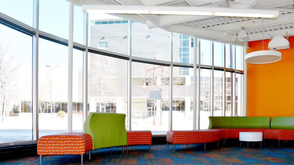 The redesigned Visitor Information Centre is dynamic and open. The space is filled with iconic imagery of Manitoba and cutting edge technology that informs guests on all that Maniotba has to offer. Multifunctional monolithic steel and aluminum rotating panels act as billboards and hubs for accessing digital technology. They invite visitors to explore during the day, and also rotate to close off and secure the Center after hours. Carefully selected Manitoba wood species are combined at the reception desk canopy to create a warm and welcoming focal point. The technology, in addition to the inclusion of new glazing units, allows the Visitor Information Centre to remain vibrant in the evening, acting as a beacon, and remaining interactive 24 hours a day.