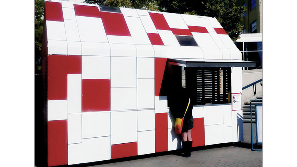 Shell: Red and white powder coated aluminium create a patchwork that celebrates the vitality of Canada’s multicultural diversity.